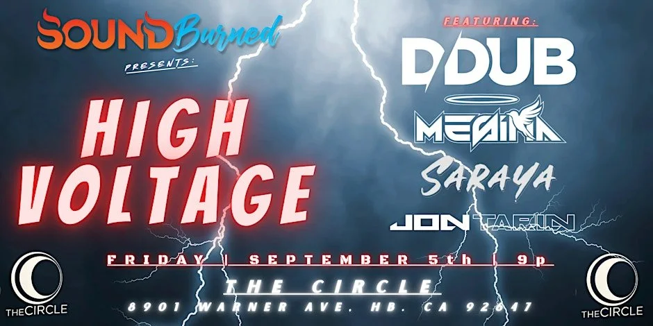 Get amped for HIGH VOLTAGE, an electrifying EDM experience presented by Sound Burned Music at The Circle OC on Friday, September 5, starting at 9 PM—with tickets from $12.50. This bass-heavy night will deliver non-stop heart-pounding beats and sweat-dripping grooves from Sound Burned’s top-tier resident DJs, lighting up the dance floor with high-energy vibes and deep grooves all night long EventbriteEventbrite.