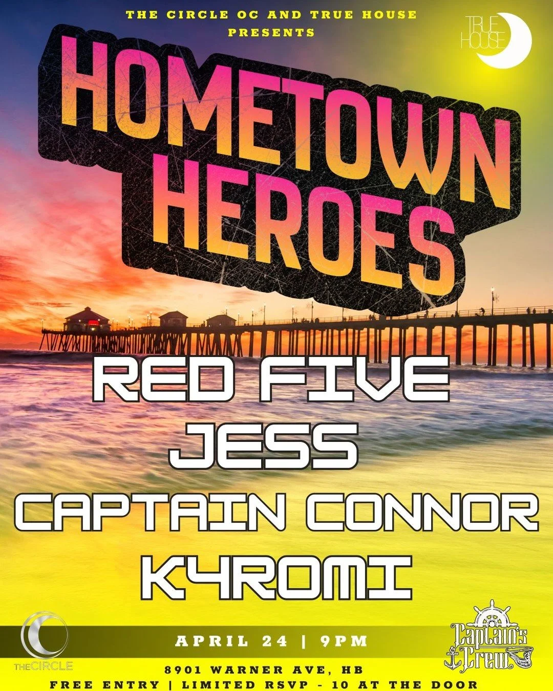 Come celebrate our home town heroes! Getting back to our roots with some of OC's most popular DJs! Red Five has been a force in the scene for over 10 years, and she will bring her disco tech sound to the floor! Jess has been building up her music catalog and has played some big shows over the last few months! Captain Connor needs no introduction as he is the Captain! K4ROMI is starting her journey and has dropped some new music while also just co-headlining True House Thursdays!